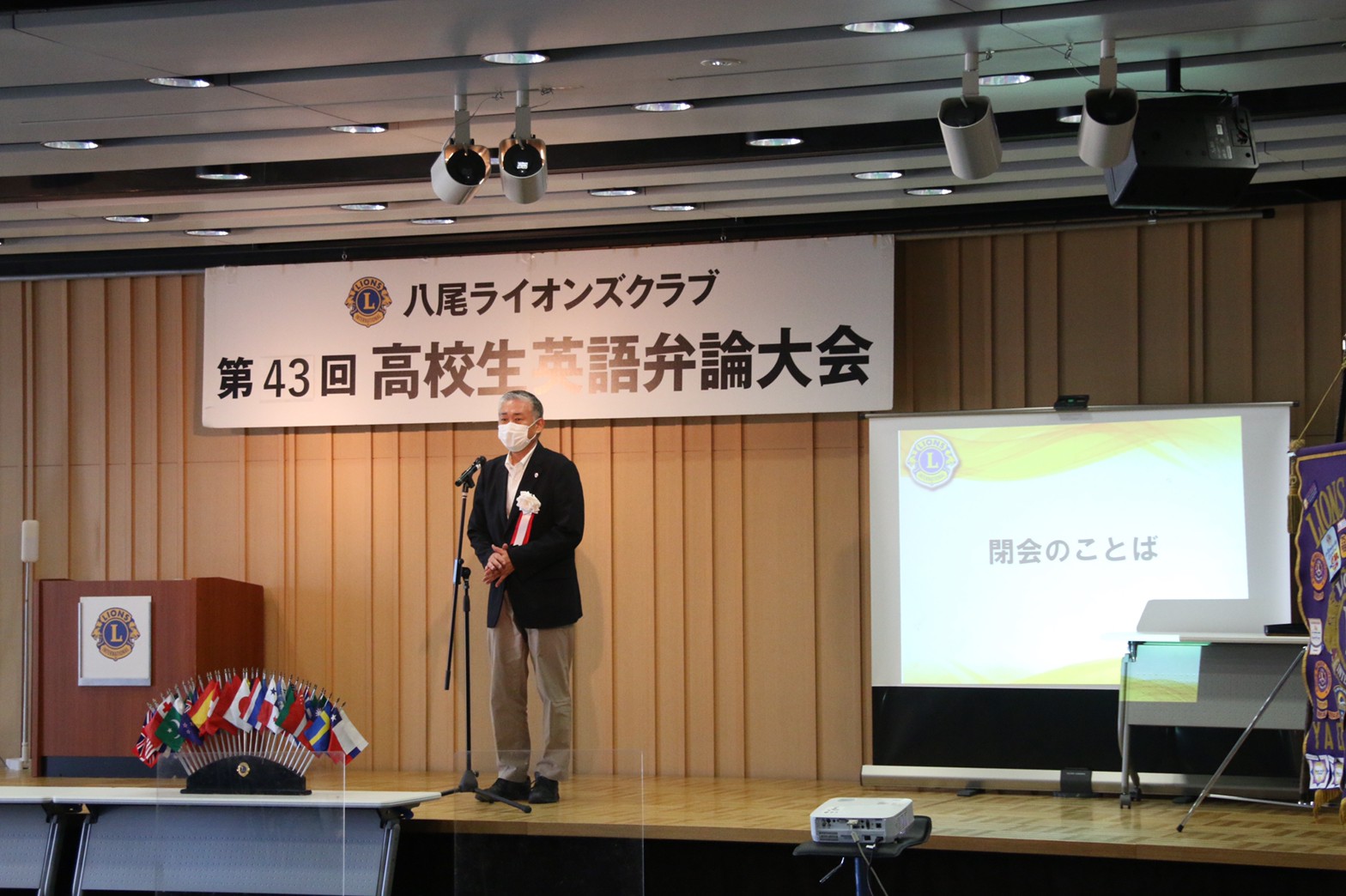 八尾ライオンズクラブ主催 第43回高校生英語弁論大会 優秀賞 久保尊君