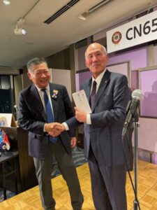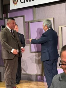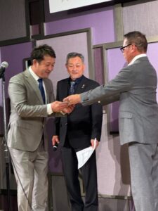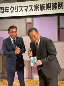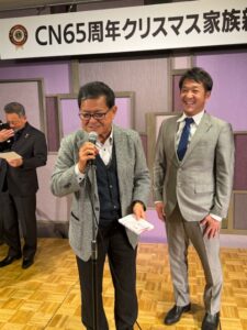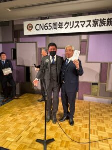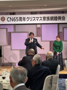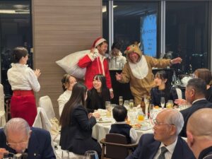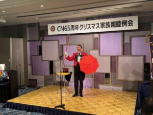■第1578回例会は大阪マリオット都ホテル20F「茜」にてクリスマス家族親睦例会が行われました。 YCEの派遣生・派遣候補生をゲストに、又、八尾レオクラブの会長・幹事をビジターにお迎えし、会長・三役・八尾レオクラブの上半期報告が行われました。 懇親会では、アトラクションのマジックや、テール・ツイスターのサンタクロース、ラッキーカードなど、家族様や、お子様も楽しんでおられました。 上半期、皆様お疲れさまでした。下半期も頑張って、C.N.65周年を盛り上げていきましょう。